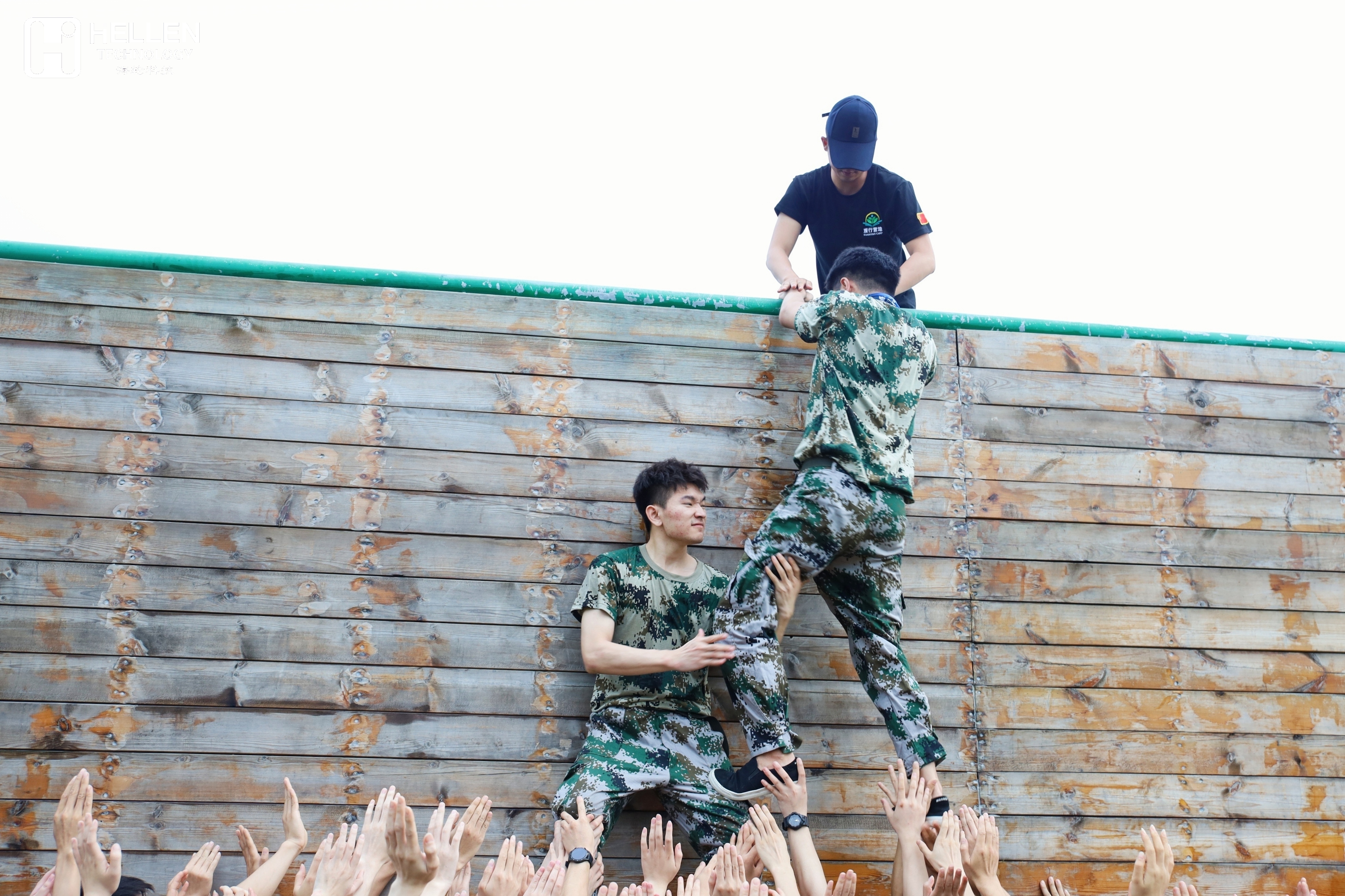 所有人一起爬上4.2m的高墙